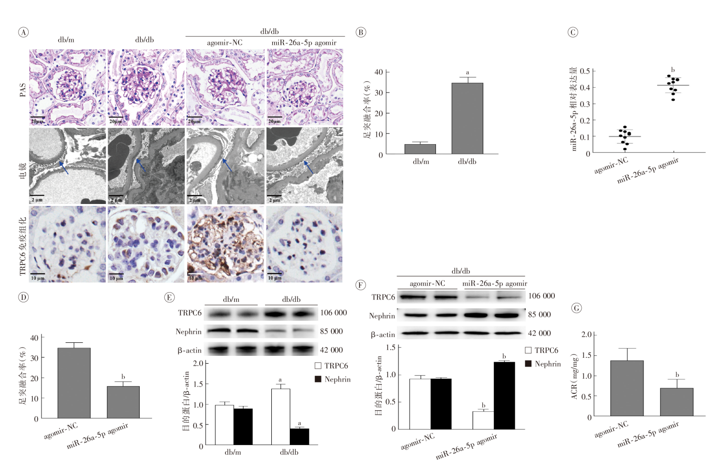 MicroRNA-26a-5p通过抑制TRPC6表达减轻糖尿病肾脏病足细胞损伤
