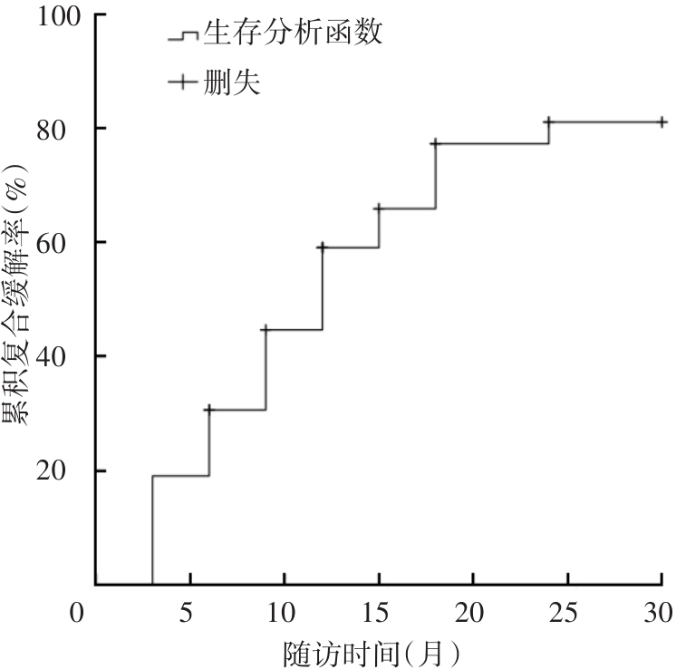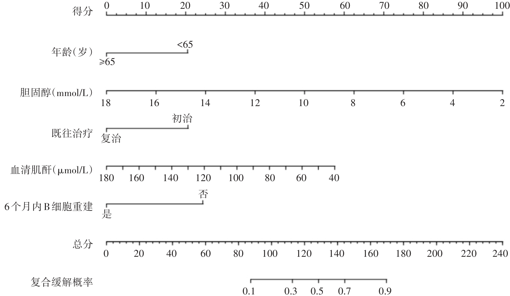 | 6个月内B细胞重建[例(%)] | 40(74.1) | 42(45.2) | 12.397 | 0.001 |