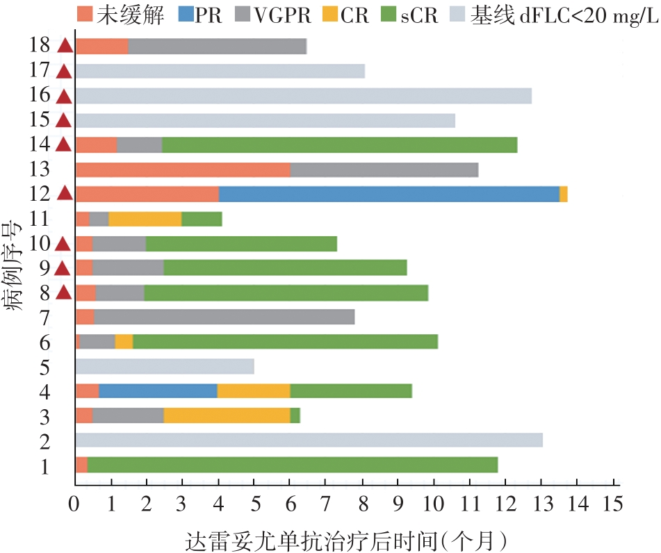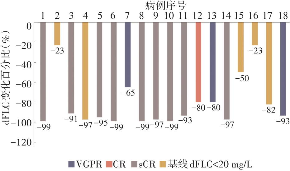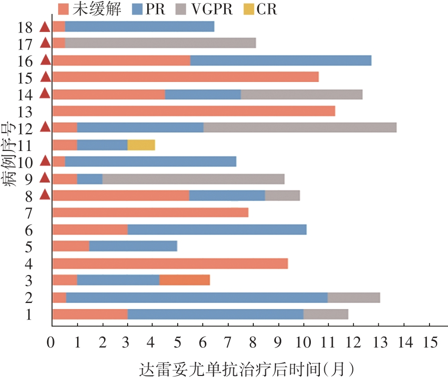 | 肾脏无缓解/PR/VGPR/CR(例) | 3/3/4/1 | 2/2/3/0 | -0.239 | 0.810 |